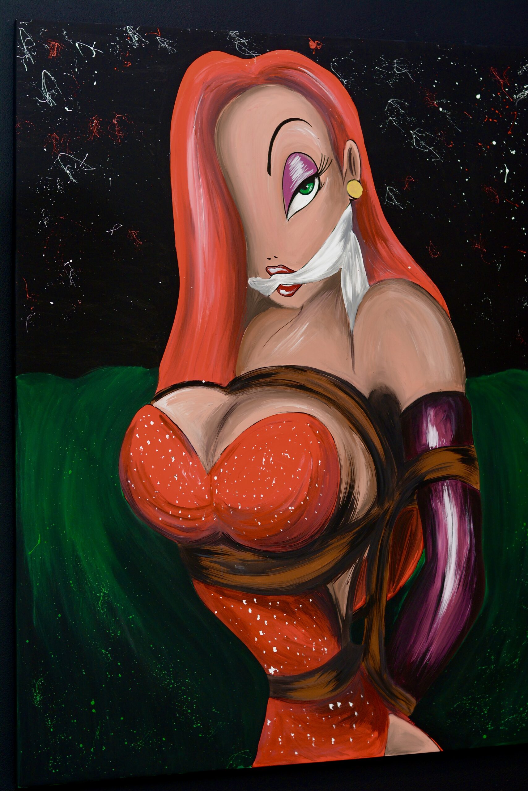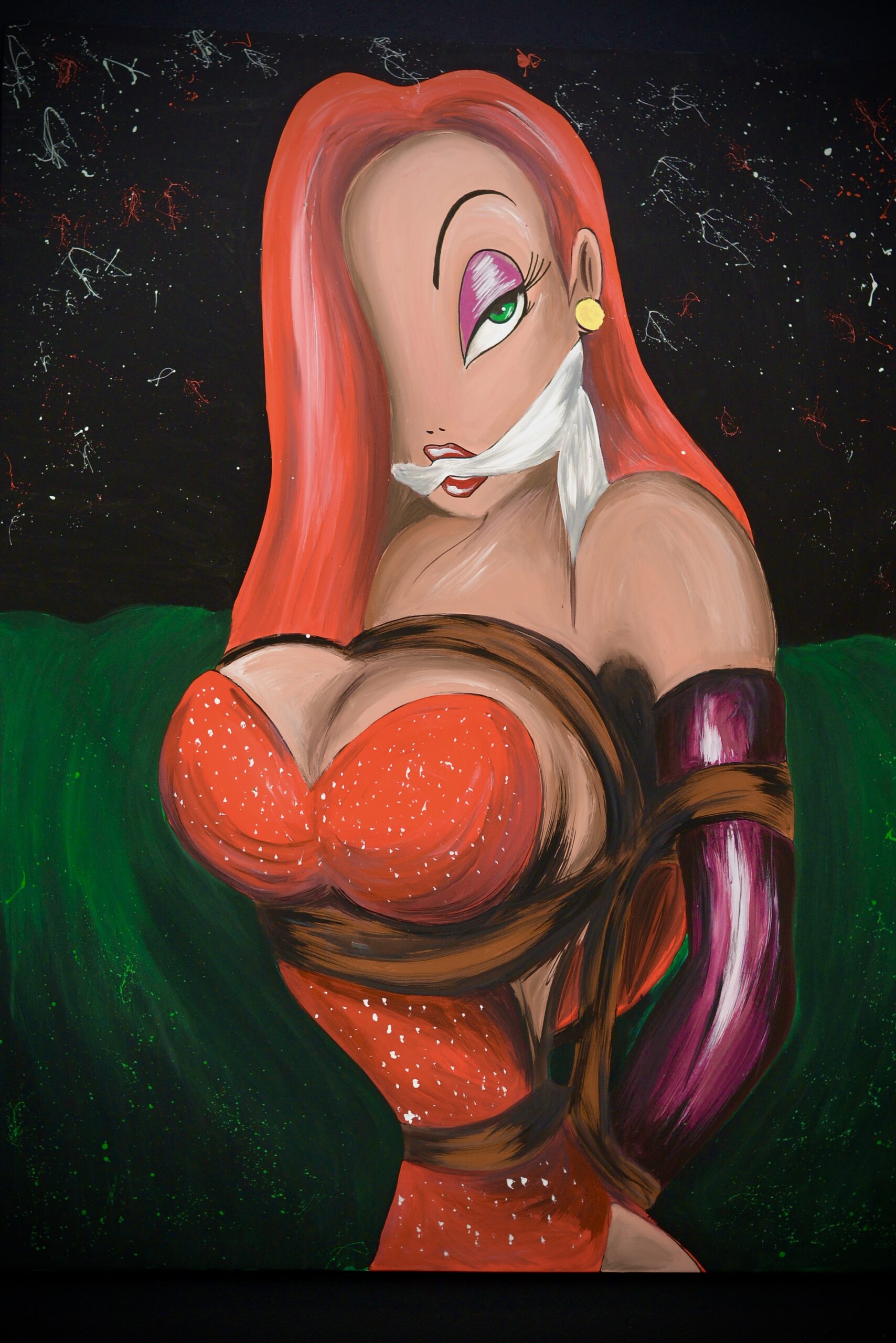 Tablou unicat cu Jessica Rabbit, pictat manual pe canvas