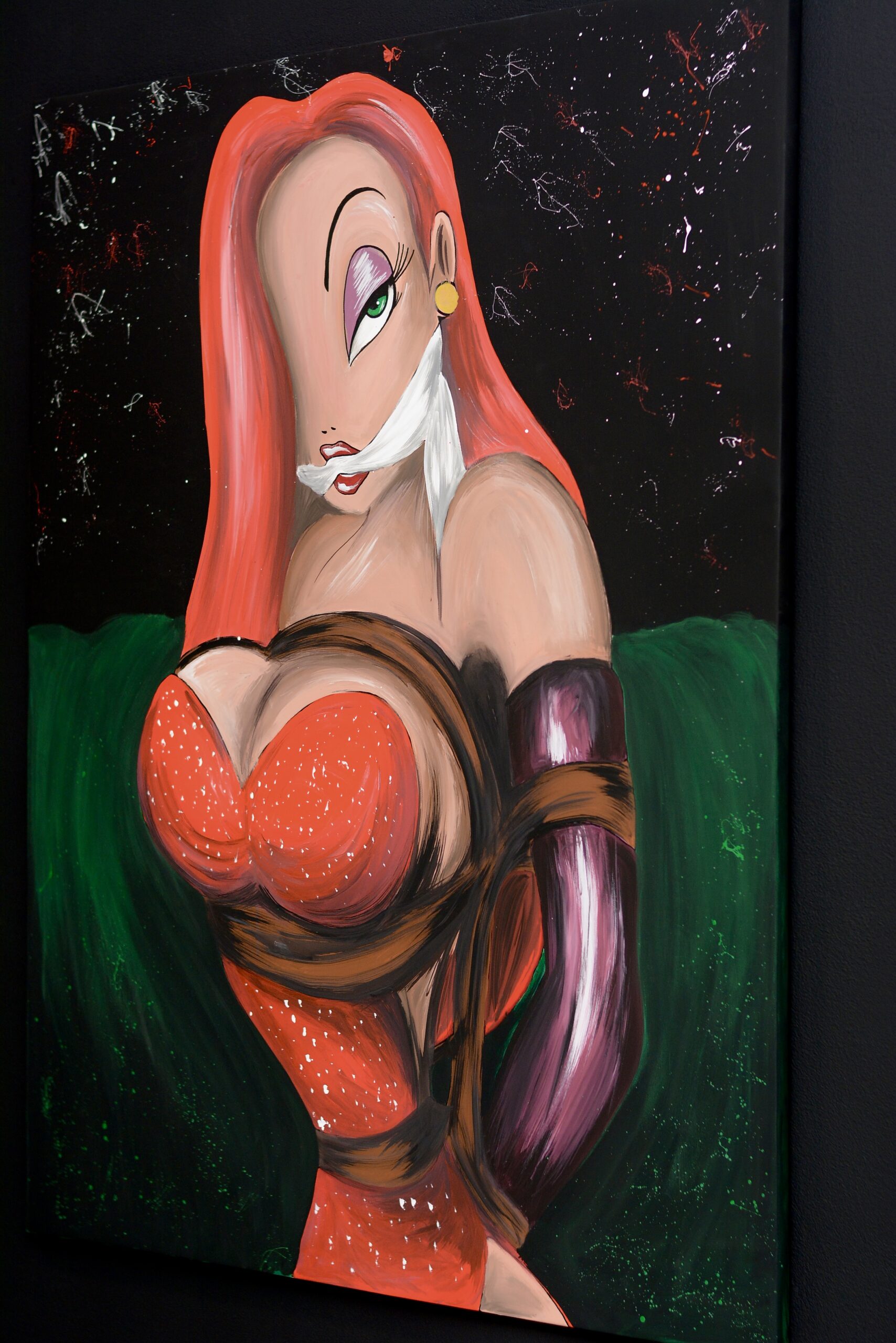 Tablou unicat cu Jessica Rabbit, pictat manual pe canvas.